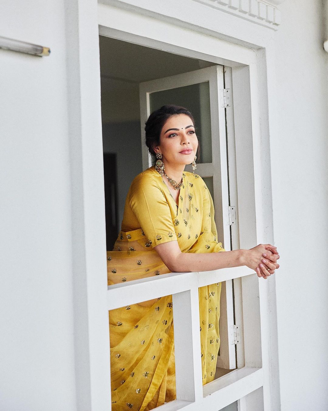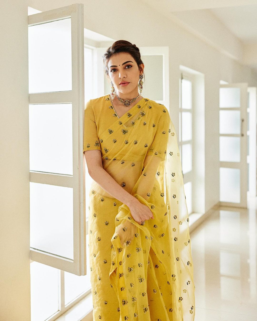 యెల్లో శారీలో అదిరిపోయే లుక్ లో కాజల్ అగర్వాల్